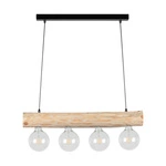 Roy Pendant Lamp Incl.4xLED GU10 5W Oiled Oak/Black Metal/Transparent PVC Cable 61640474