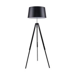 SPOTLIGHT lampa podłogowa tripod. Drewniany trójnog wykonany z drewna bukowego w kolorze czarnym natomiast abażur wykonany jest z tkaniny koloru czarnego. W lampie zastosowano przewód koloru transparetnego, 6025004