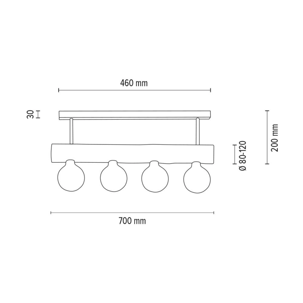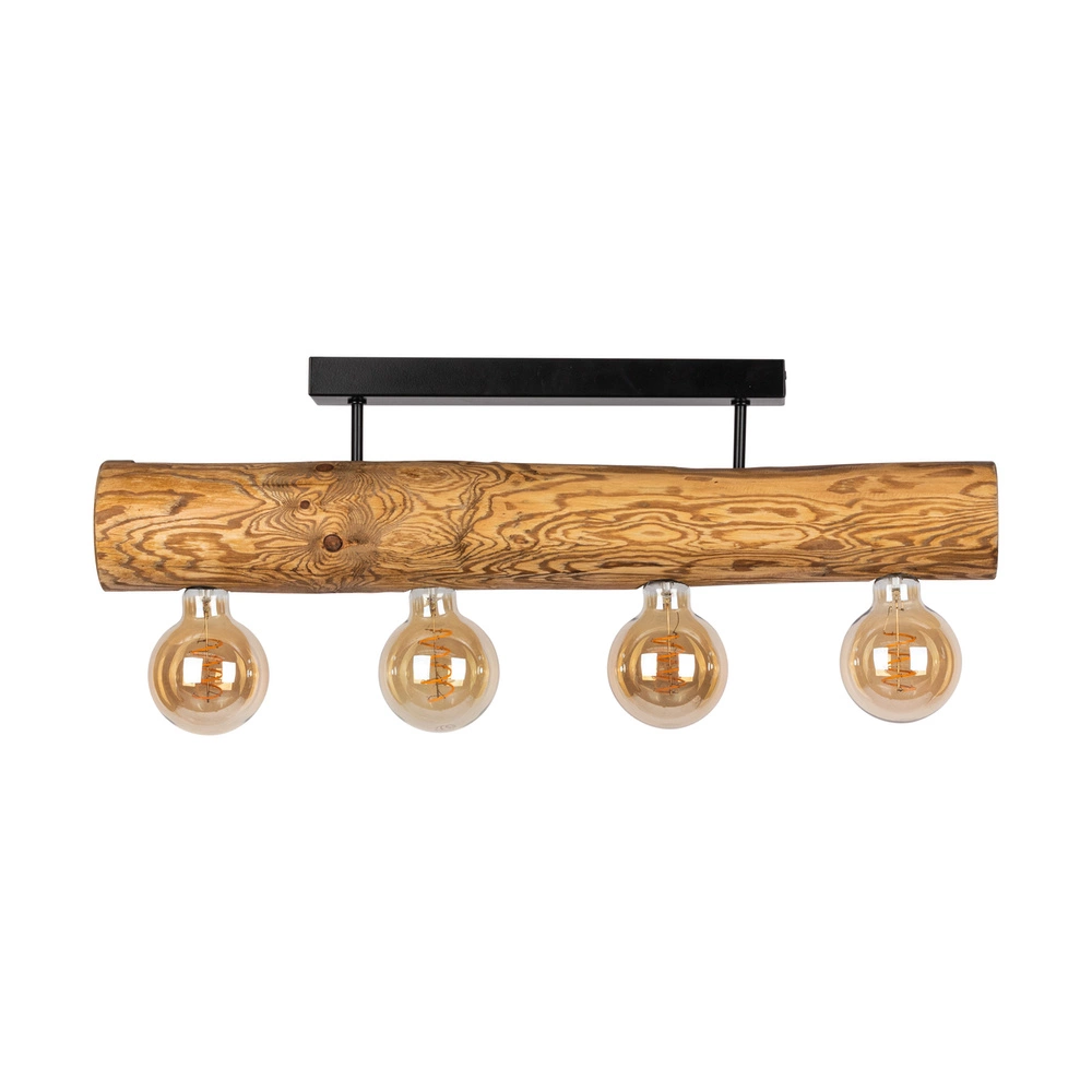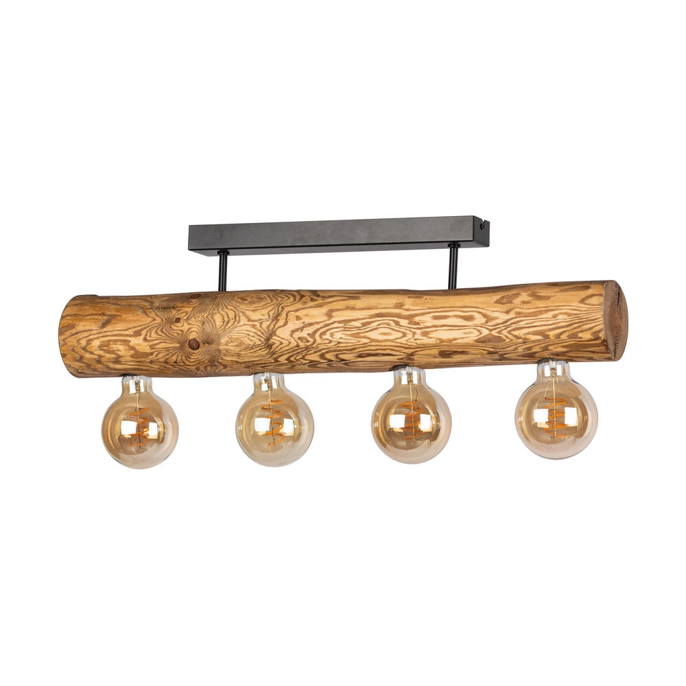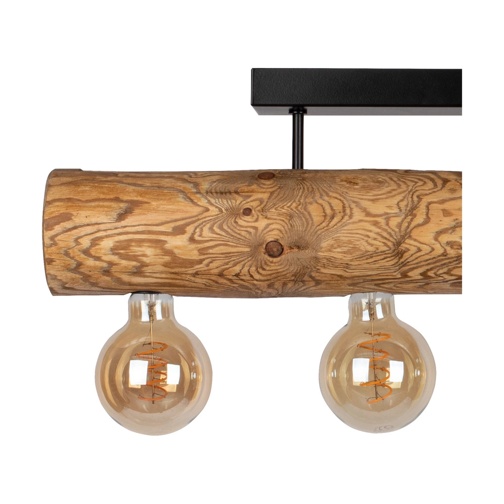 Discover the elegance of the Trabo Simple Ceiling Lamp, designed to bring a warm and inviting atmosphere to any room. Featuring four E27 sockets, this ceiling lamp is perfect for a variety of spaces, offering both style and functionality.The ceiling lamp features a beam made from premium stained pine wood, finished in a rich brown color that highlights the wood’s natural grain. This elegant stain adds depth and character, making the lamp a focal point in any room.The black metal components provide a sleek contrast to the stained pine, enhancing the lamp’s modern aesthetic while complementing its rustic charm. The metal accents are both durable and visually striking.Equipped with four E27 sockets, the Trabo Simple Ceiling Lamp allows for flexible lighting options. You can choose from a variety of bulbs, including energy-efficient LEDs, to create the perfect ambiance for your space.The blend of stained pine and black metal creates a harmonious balance between rustic and contemporary styles. The ceiling lamp’s design makes it a versatile addition to dining areas, living rooms, or any space that benefits from a touch of warmth and sophistication.The use of sustainably sourced stained pine wood demonstrates a commitment to quality and environmental responsibility. Each lamp is unique, with natural variations and imperfections that enhance its authenticity.Enhance your home with the Trabo Simple Ceiling Lamp, where rustic elegance meets modern functionality to create a beautifully illuminated space.