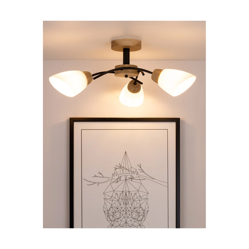 Viletta Wood Ceiling Lamp 3xE27 Max.60W Oiled Oak/Black Metal/White Glass 8142374