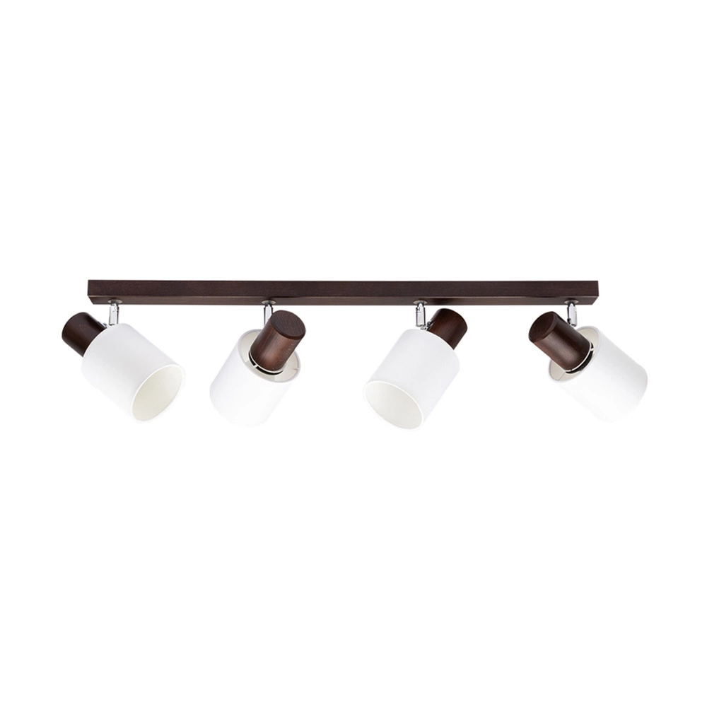 The Treehouse Ceiling Lamp with a four-light configuration brings a greater level of illumination and elegance to your space. Featuring a base made from walnut beech wood, this lamp showcases the wood's rich, deep tones and intricate grain, providing a sophisticated and natural touch to your décor.The fixture is equipped with four white fabric shades that ensure a soft and evenly distributed light. These shades are designed to enhance the warmth and comfort of your living space, creating a pleasant atmosphere without harsh glare. The fabric's texture and color harmonize beautifully with the wooden base, adding to the lamp's refined and timeless appeal.Each of the four E27 sockets provides the flexibility to use a variety of bulbs, including energy-efficient LED options. This allows you to tailor the lighting to your specific needs, whether you're looking for bright illumination or a softer glow. The Treehouse Ceiling Lamp is an ideal choice for larger rooms or spaces where you need enhanced lighting combined with classic style.