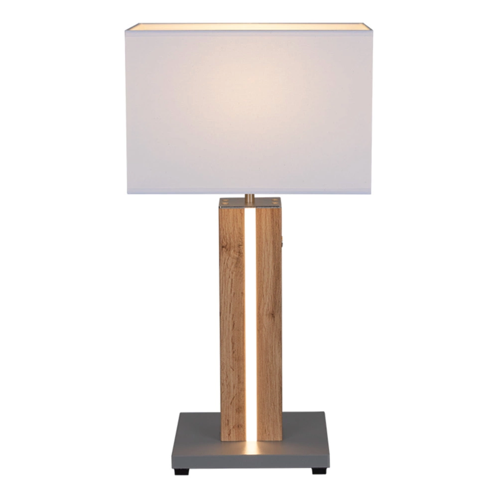 Flame Table Lamp 1xE27 Max.40W, 1xLED 12V Integrated 4.6W Gray/Oak veneer/White with Touch Dimmer 820119187