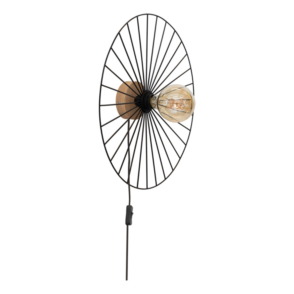 Antonella Wall Lamp 1xE27 Max.25W Oiled Oak/Black Metal/Black Fabric Cable 289249174