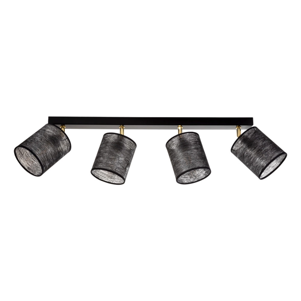 Elevate your interior with the Nevoa Ceiling Lamp, designed to infuse any space with sophistication and style. This fixture features a robust black metal frame, enhanced by elegant gold metal accents, which together create a striking contrast that catches the eye. With four E27 sockets, each accommodating up to 25W bulbs, it offers abundant lighting perfect for larger rooms or areas where additional illumination is needed. The black fabric shades filter light gently, casting a warm and inviting glow that complements the fixture’s luxurious design. Whether you’re outfitting a grand dining room, a spacious living area, or a stylish office, the Nevoa Ceiling Lamp brings both function and flair to your home.