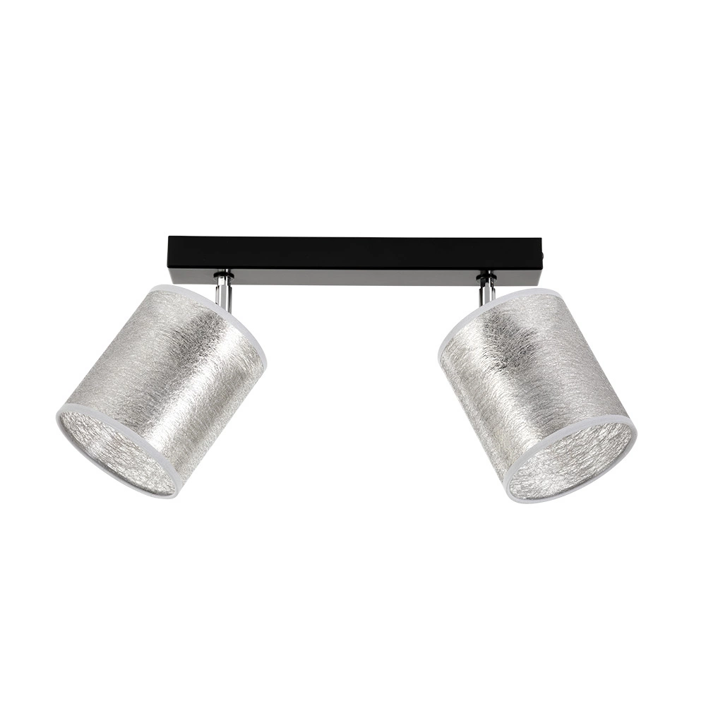 Enhance your room's ambiance with the Nevoa Ceiling Lamp, featuring a bold combination of black metal and chrome. This dual-socket fixture supports up to 25W per bulb, providing effective lighting while maintaining a sleek, streamlined profile. The silver fabric shade adds a touch of glamour, reflecting light in a way that softens and enriches the space. Perfect for both contemporary and transitional settings, the Nevoa Ceiling Lamp blends style with function, making it an excellent choice for dining areas, kitchens, or living rooms.