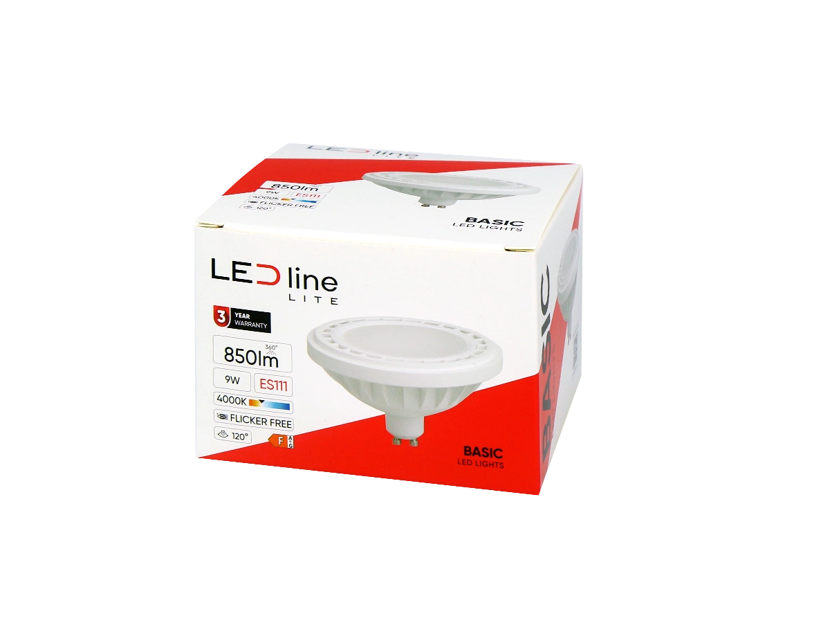 ES111 9W 4000K 850lm to nowoczesne źródło światła marki LED line LITE, które doskonale sprawdzi się w różnorodnych zastosowaniach wewnętrznych. Dzięki trzonkowi GU10 oraz napięciu zasilania w zakresie od 175 do 265V AC, produkt jest łatwy w instalacji i kompatybilny z większością standardowych opraw oświetleniowych. Emitowana przez lampę biała barwa światła o temperaturze barwowej wynoszącej 4000 K zapewnia naturalne i komfortowe oświetlenie przestrzeni, idealne do biur, sklepów czy domowych wnętrz.