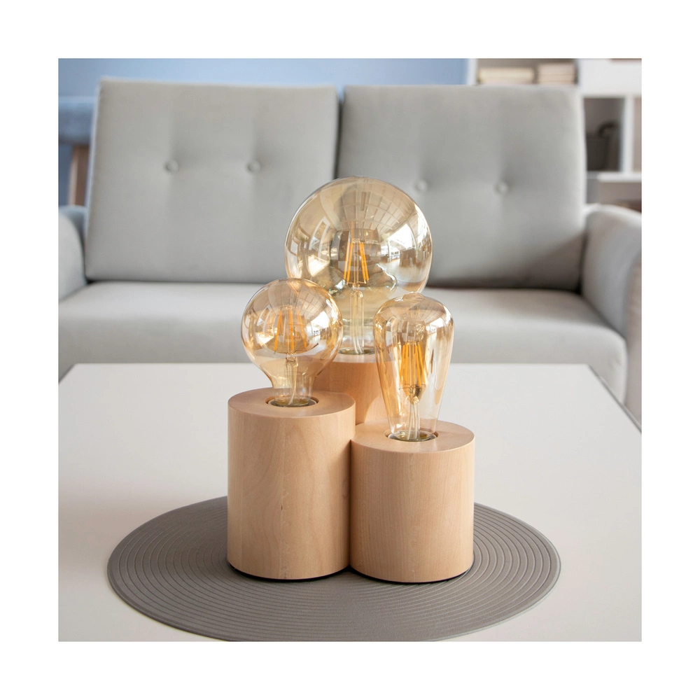 Okrągła lampa stołowa Vincent 3xE27 maks. 15W drewno brzozowe/kabel z czarnej tkaniny 2266360