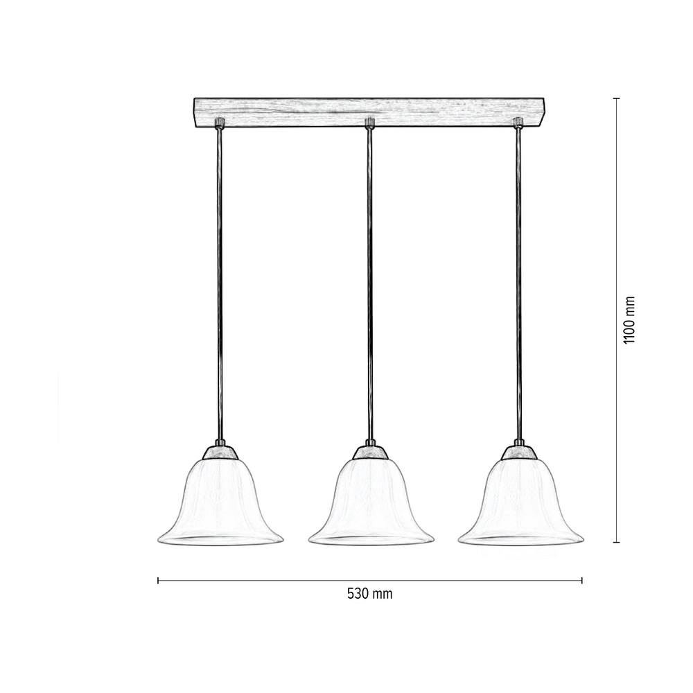 Lampa Wisząca Anna 3xE27 Max.60W Dąb Olejowany/Przezroczysty Kabel PCV/Szkło Białe 17940374