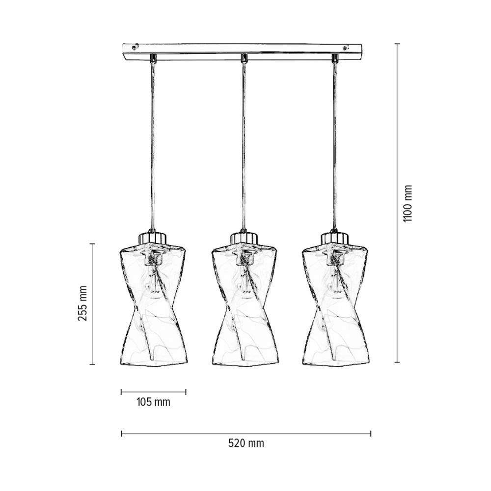 Lampa wisząca Twist 3xE27 Max.25W Metal Chrom/Przezroczysty kabel PVC/Przezroczyste szkło 13620328