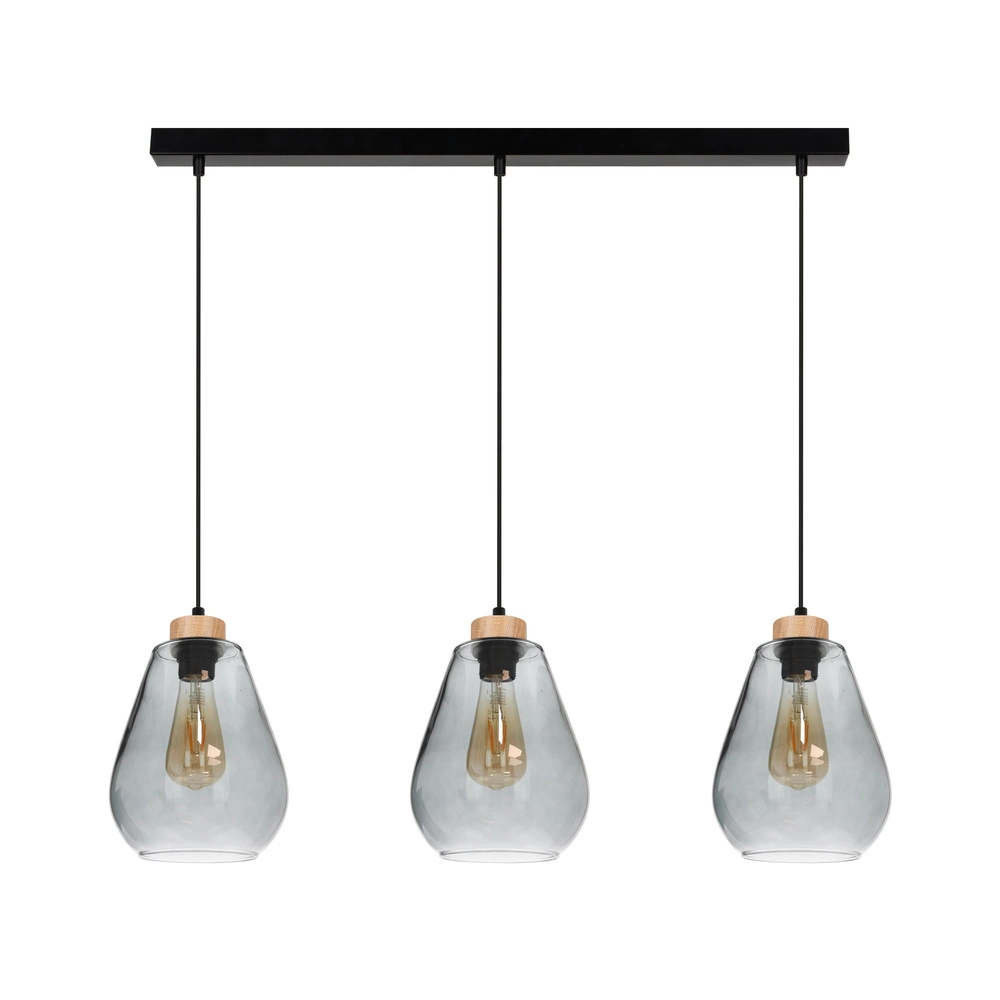 Lampa Wisząca Kigali 3xE27 Max.60W Dąb Olejowany/Czarny Metal/Czarny Kabel PCV/Szkło Dymne 5500064