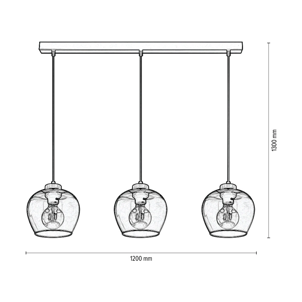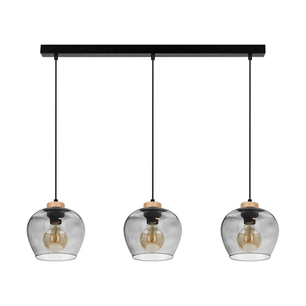 Lampa Wisząca Praia 3xE27 Maks. 60W Dąb Olejowany/Czarny Metal/Czarny Kabel PCV/Szkło Dymne 5500060