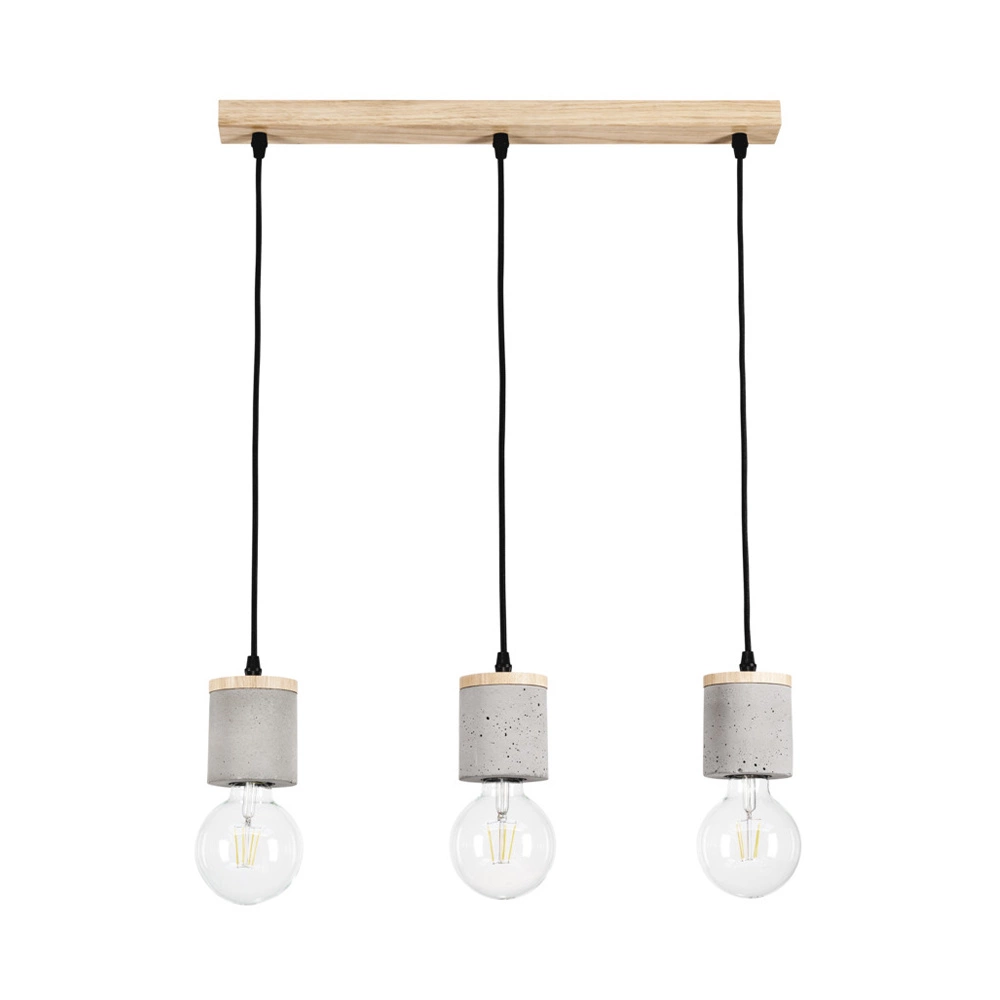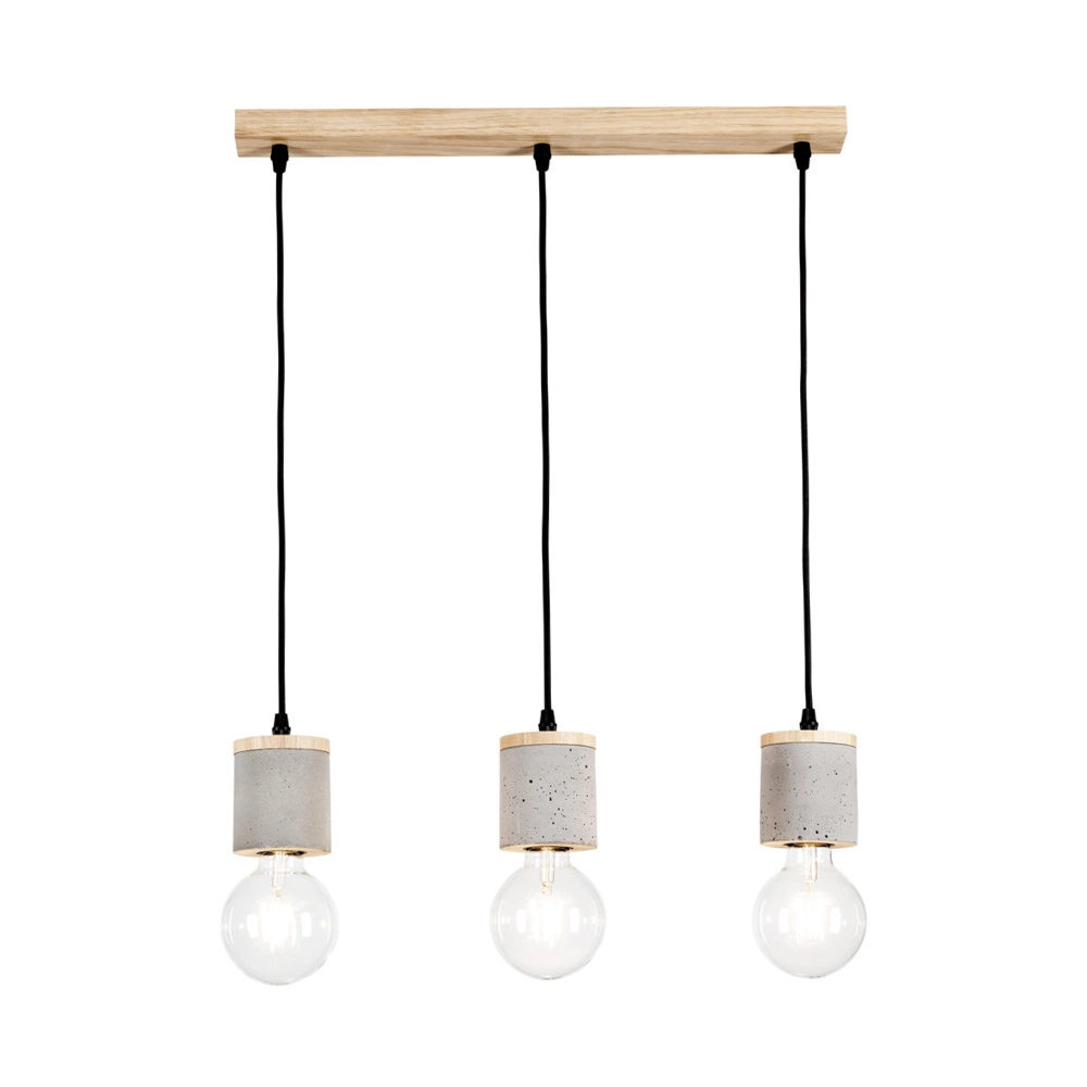 Lampa wisząca Cesar 3xE27 to połączenie naturalnej elegancji i surowego, industrialnego stylu, które przyciągnie uwagę w każdym wnętrzu. Jej konstrukcja opiera się na solidnym, olejowanym dębie, który wnosi do pomieszczenia ciepło i naturalny urok. Wzbogacona o czarne kable w oplocie, lampa zyskuje na wyrafinowaniu, a jednocześnie zachowuje minimalistyczny charakter. Surowe wykończenie w postaci szarego betonu dodaje jej nowoczesnego, industrialnego wyrazu, idealnie komponując się z modnymi aranżacjami.Lampa Cesar nie tylko pełni rolę funkcjonalnego oświetlenia, ale również staje się wyjątkowym elementem dekoracyjnym, który wzbogaca wnętrze o stylowy, designerski akcent. Trzy źródła światła o maksymalnej mocy 60W każde, rozmieszczone na dębowej belce, zapewniają doskonałe rozproszenie światła, idealne do oświetlenia przestronnych pomieszczeń, takich jak salon, jadalnia czy kuchnia. Dzięki swojej uniwersalnej formie i harmonijnemu połączeniu materiałów, lampa Cesar stanowi doskonałe rozwiązanie zarówno dla nowoczesnych, jak i klasycznych wnętrz, dodając im charakteru i wyrafinowania.