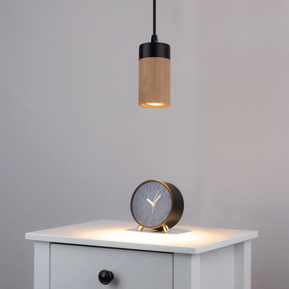 Lampa wisząca Annick w zestawie Kabel 1xLED GU10 5W Dąb olejowany/Czarny metal/Czarny silikonowy oplot 1419104