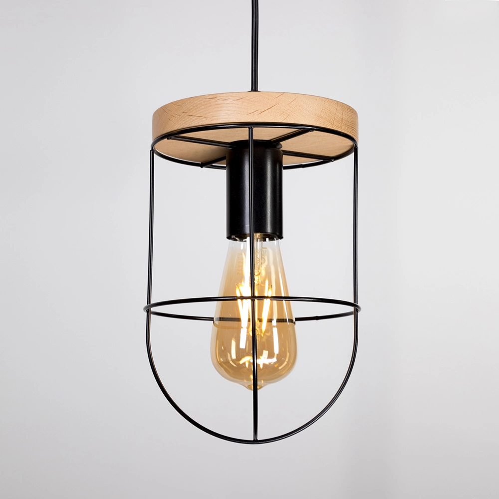 Lampa Wisząca Netuno 1xE27 Max.60W Dąb Olejowany/Czarny Metal/Czarny Kabel PCV 184159104