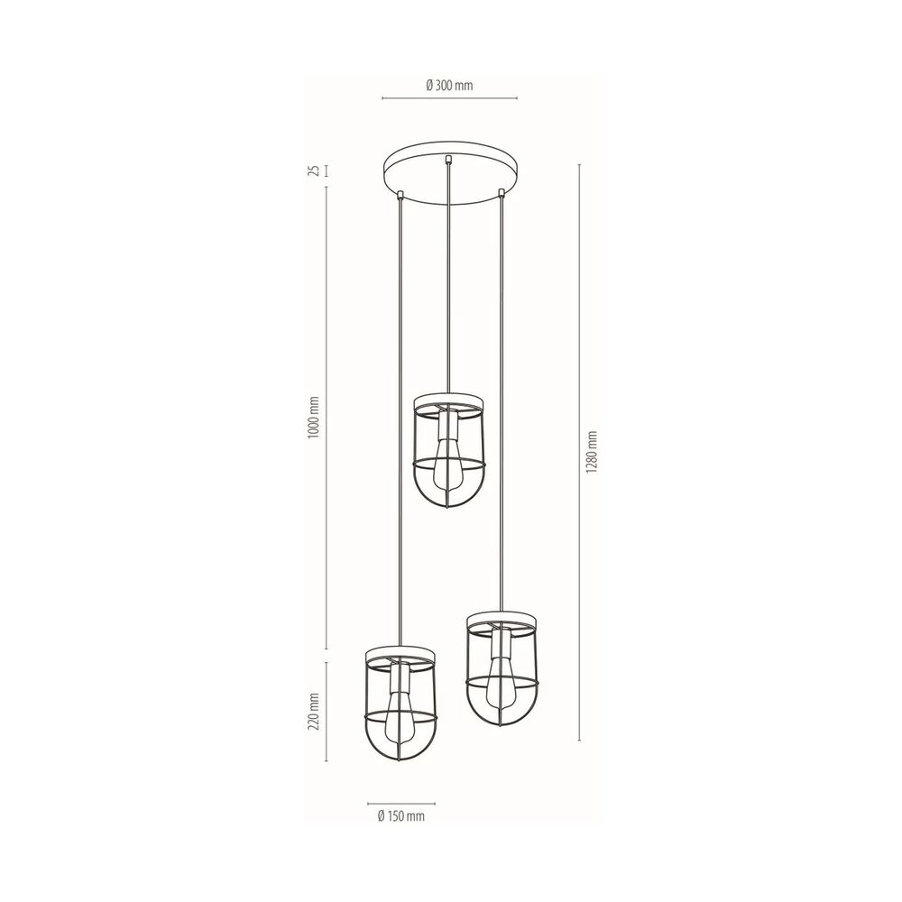 Lampa Wisząca Netuno 3xE27 Max.60W Bejcowana Sosna Brązowa/Czarny Metal/Czarny Kabel PCV/Złoty Metal 1811059351R