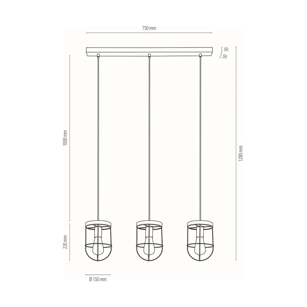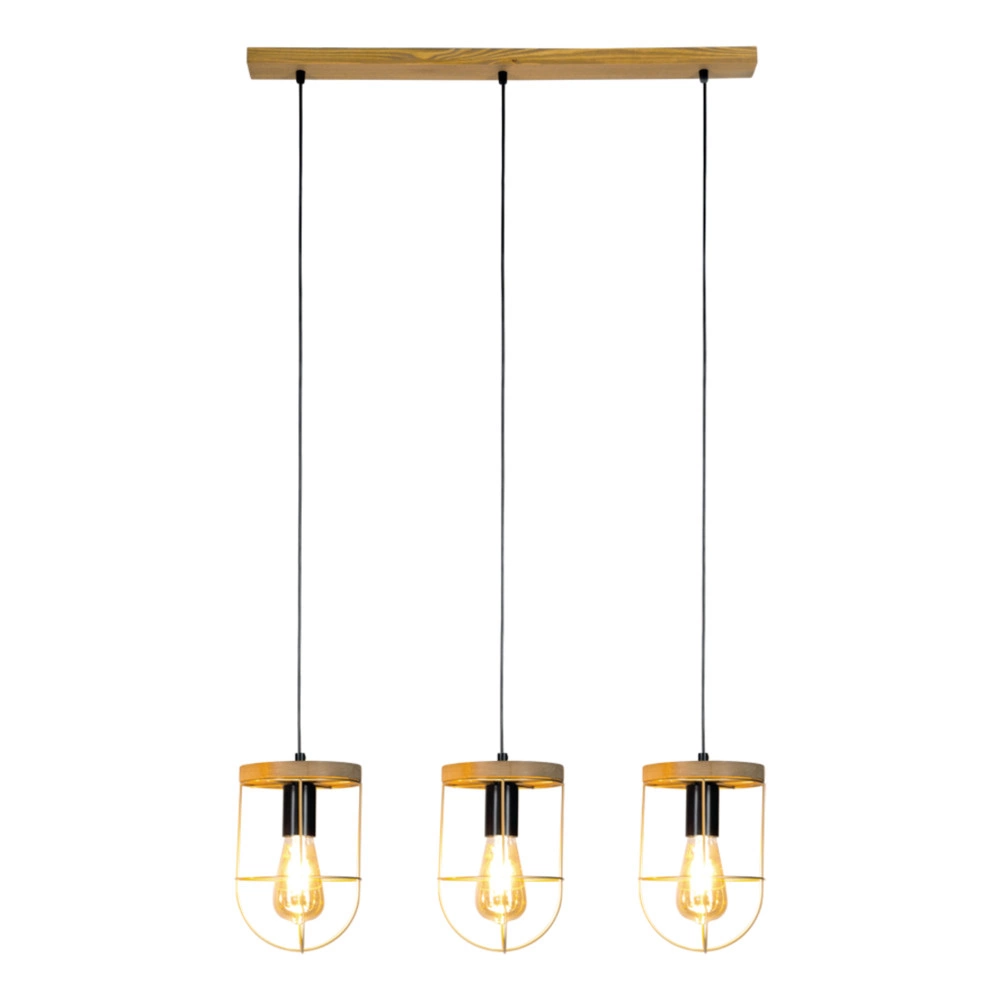 Lampa Wisząca Netuno 3xE27 Max.60W Bejcowana Sosna Brązowa/Czarny Metal/Czarny Kabel PCV/Złoty Metal 181059351