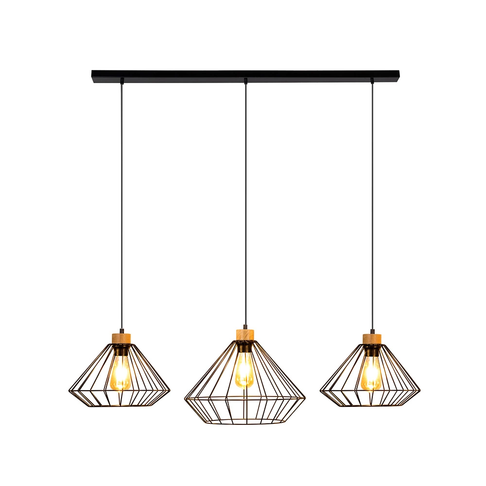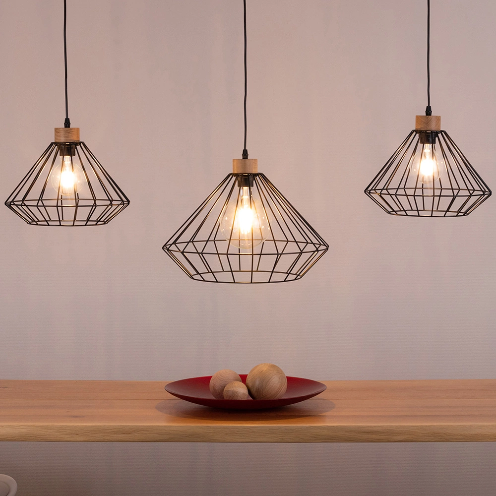 Lampa wisząca Raquelle 3xE27 maks. 60W Dąb olejowany/Czarny metal/Czarny kabel PCV 187319304