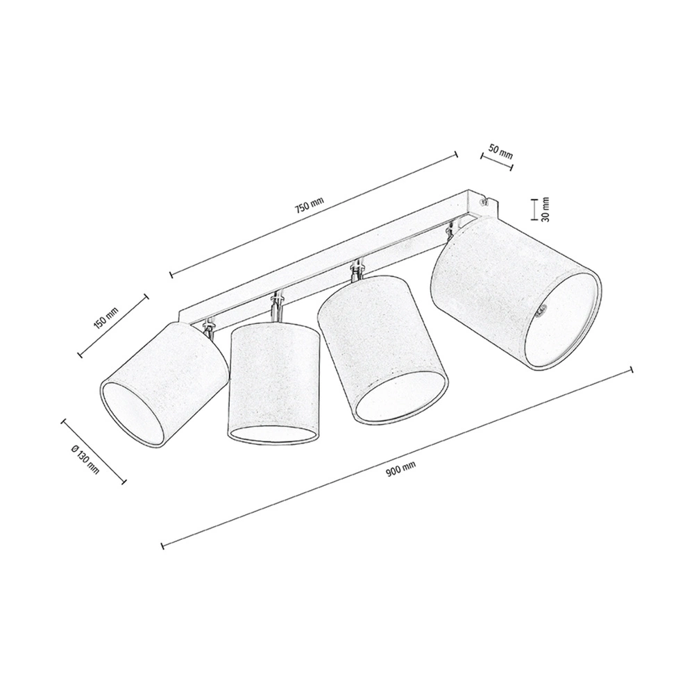 Lampa sufitowa Mateo z czterema oprawkami E27 to wyrafinowany wybór do każdego pomieszczenia wymagającego zarówno funkcjonalności, jak i stylu. Czarna metalowa konstrukcja obsługuje cztery żarówki o mocy do 25 watów każda, zapewniając wystarczające oświetlenie większych przestrzeni. Beżowe odcienie tapet zapewniają delikatne, rozproszone światło, które poprawia atmosferę, dzięki czemu idealnie nadają się do jadalni, salonów na planie otwartym lub nowoczesnych biur. Połączenie czarnej metalowej i beżowej tapety tworzy wyrafinowany kontrast, oferując ponadczasowy wygląd, który uzupełnia szeroką gamę projektów wnętrz, zapewniając jednocześnie efektywne i stylowe oświetlenie.