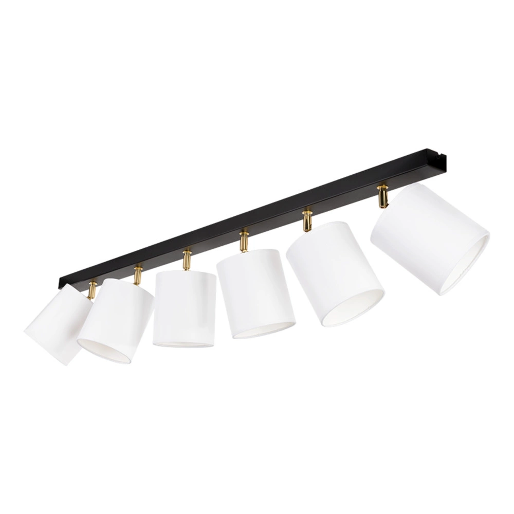 Lampa sufitowa Aprillia 6xE27 maks. 25W czarny metal/złoty metal/biały klosz z tkaniny 56344604