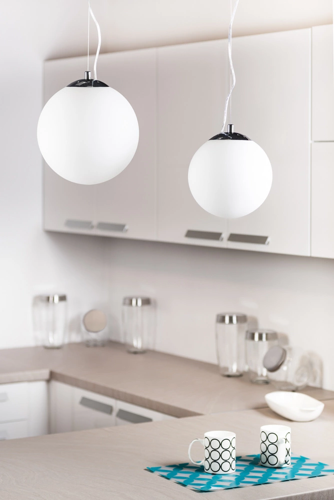 Lampa wisząca Emil to wyrafinowane rozwiązanie oświetleniowe, które łączy w sobie eleganckie chromowane wykończenie z klasycznym kloszem z białego szkła. Zaprojektowana do stosowania z pojedynczą żarówką E27 o mocy do 60 W, lampa ta zapewnia zarówno stylowe, jak i wydajne oświetlenie, idealne do nowoczesnych kuchni, jadalni lub pomieszczeń mieszkalnych.